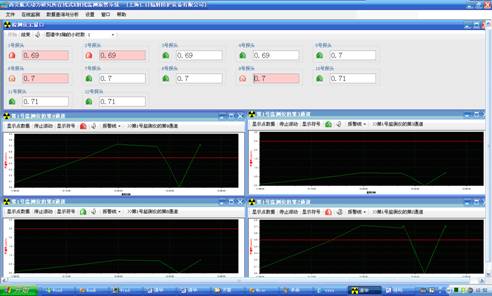 本系統(tǒng)以工業(yè)控制計算機作為上位機,通過由 5 芯屏蔽電纜線連接的 RS-485 通訊網(wǎng)絡(luò),來實時采集安裝在現(xiàn)場的若干臺 REN300 在線 x- γ輻射安全報警儀和多個不同量程的 X、γ射線探頭 . 通過對采集數(shù)據(jù)的加工處理,系統(tǒng)以文本數(shù)字、動態(tài)圖形曲線、動態(tài)圖形符號、動態(tài)顏色、報警聲音的方式向管理人員和現(xiàn)場工作人員呈現(xiàn)輻射現(xiàn)場的劑量率信息。同時在保證系統(tǒng)穩(wěn)定運行的前提下,系統(tǒng)能連續(xù)保存 30 個輻射探頭 5 年以上的歷史數(shù)據(jù),為輻射環(huán)境評價提供重要的數(shù)據(jù)依據(jù) . 此外系統(tǒng)還提供對歷史的報警數(shù)分析報表、平均劑量率分析報表等統(tǒng)計分析功能。本系統(tǒng)是一套成熟的、完善的、實用的系統(tǒng),已在多個地方安裝并運行。